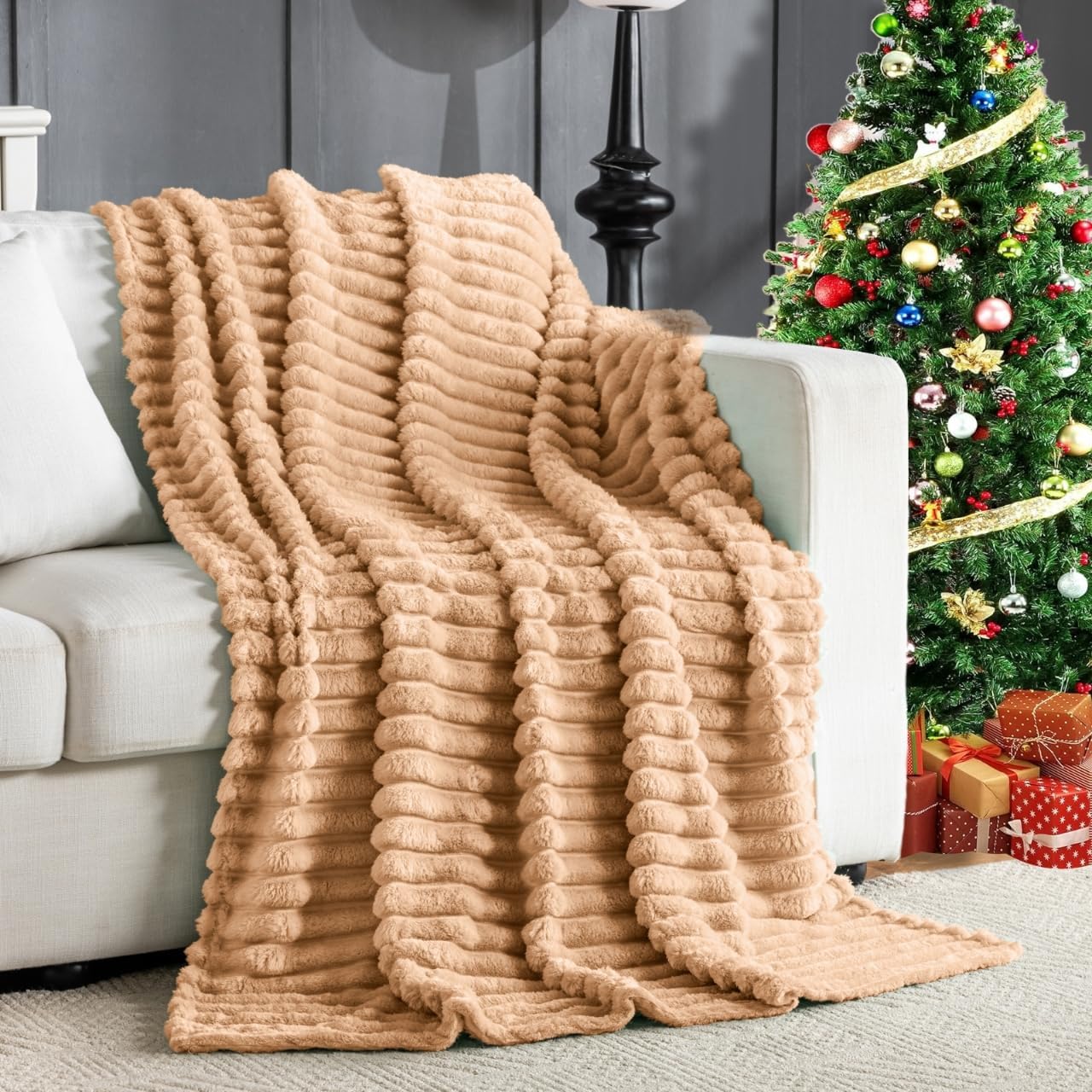 HOME DECOR: The unique striped plush blanket adds to the warm of the room decor. It is versatile and suitable for the whole family - women , kids, adults, and even pets, and is also suitable for teenage girls' room decoration. Whether it is spread on the bed, placed on the sofa, or spread on the sofa bed chair, this sofa blanket is perfect living room/bedroom decoration.