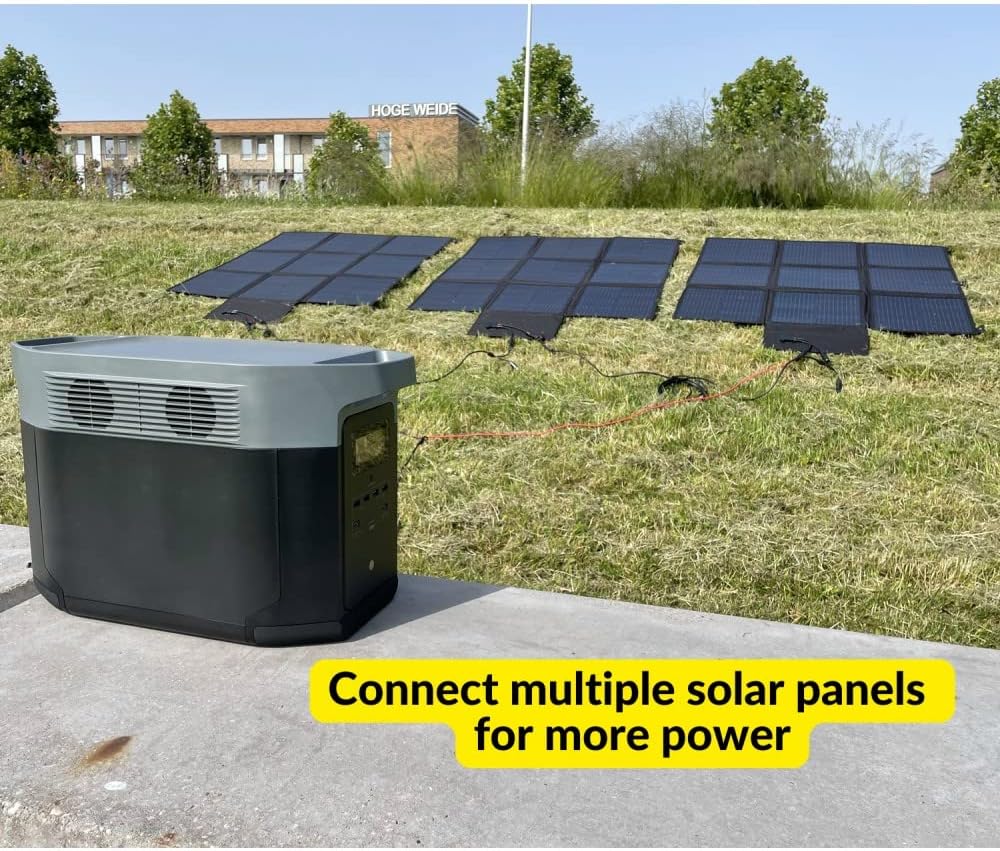 Output: Come with standard solar connectors, easy for you to connect more than one panel to get more power. 16ft extend cable with solar connectors.